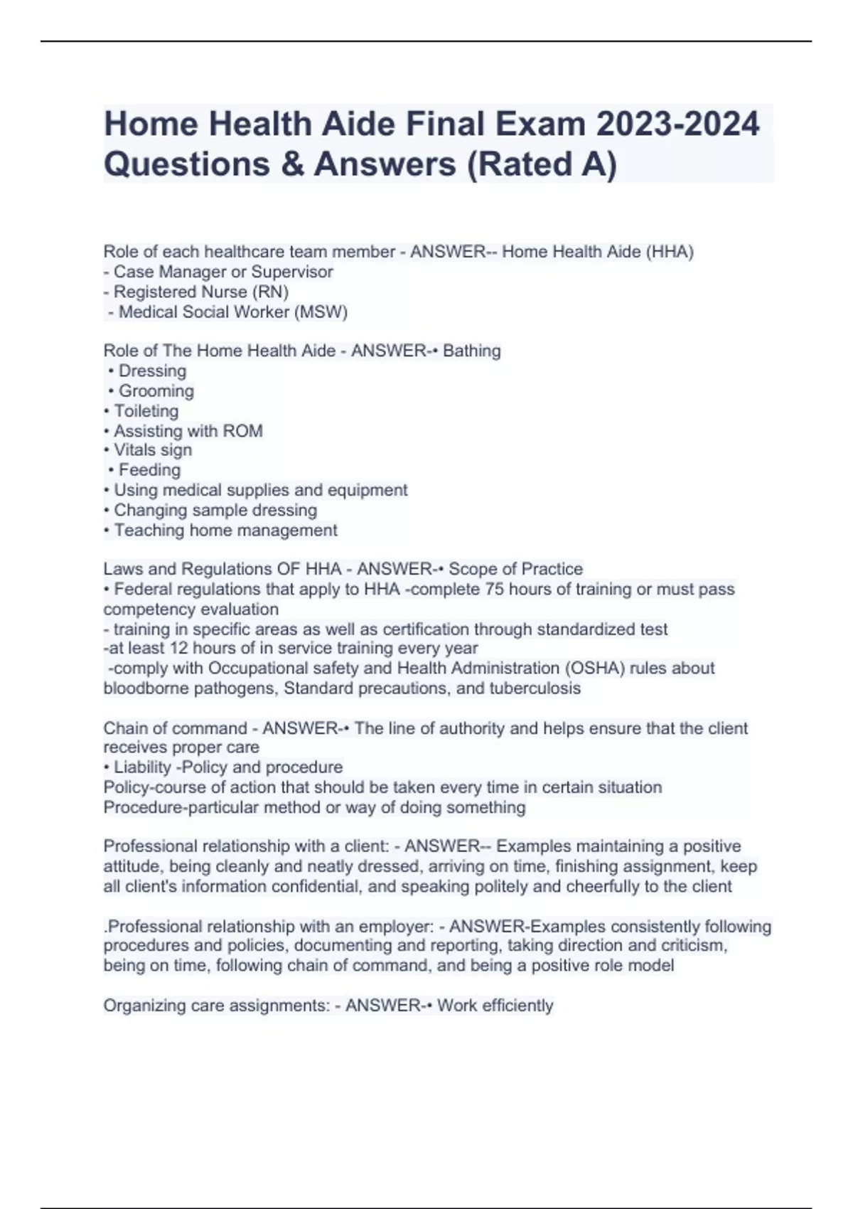 *Home Health Aide Final Exam Questions & Answers (Rated A) - Home *